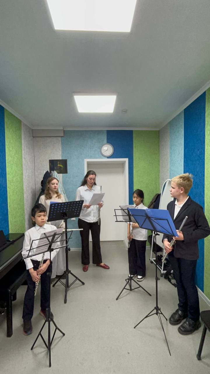 В классе флейты прошёл открытый урок на тему: «Флейтовый ансамбль как средство развития музыкального мышления у учащихся». Урок провела Танатарова С.Ж. представив возможности ансамблевого музицирования и его роль в развитии творческого мышления учащихся. Участники занятия — ансамбль флейт, который продемонстрировал, как совместная игра развивает слух, ритм, взаимодействие и артистичность.